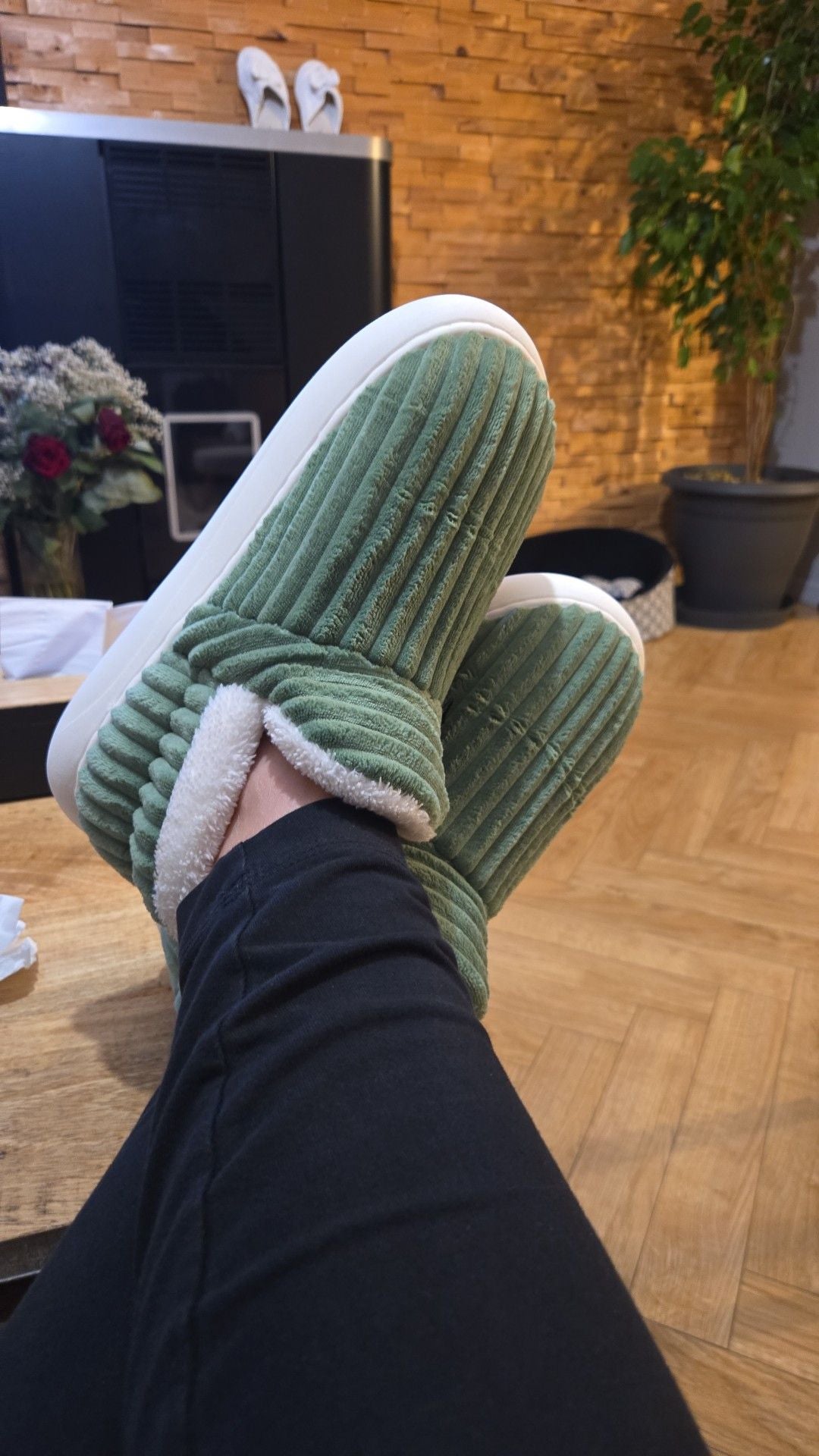 “Ich habe das 3er-Set für mich, meine Frau und meinen Sohn gekauft – und ehrlich gesagt war es der beste Kauf, den wir diesen Winter gemacht haben. Alle tragen sie täglich. Sie sind warm, geben guten Halt und die rutschfeste Sohle fühlt sich auf unseren Fliesenböden wirklich sicher an.”